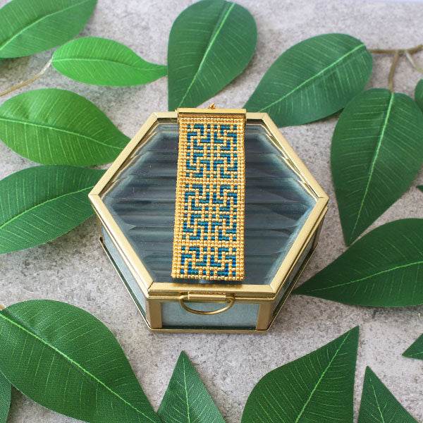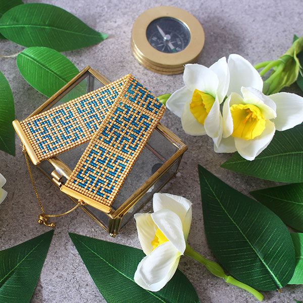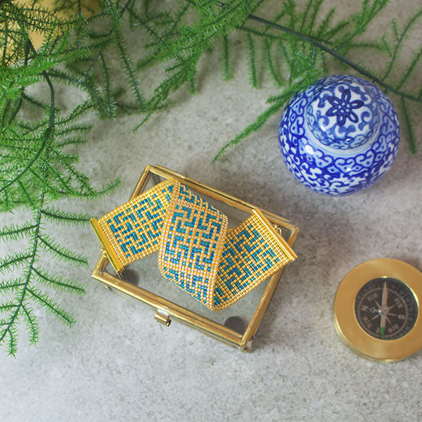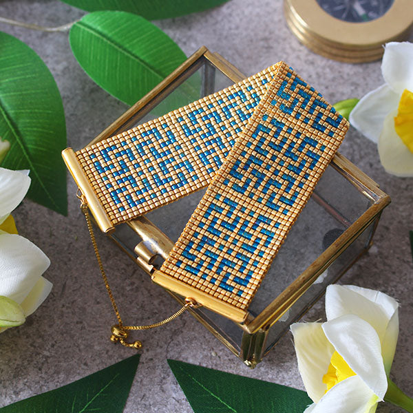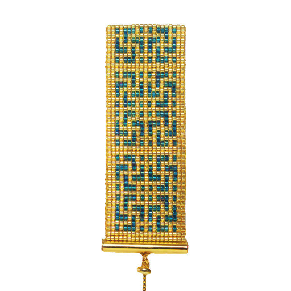 The Aurelia bracelet is based on a traditional pattern I found in a museum. Aurelia has an extremely intricate repeating design which makes it both sophisticated and beautiful. It is one of my favourite designs from the collection.
